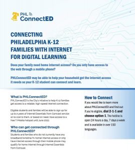 - Parent & Family Technology Support Centers Education Center, Philadelphia School District (open through Sept 18)